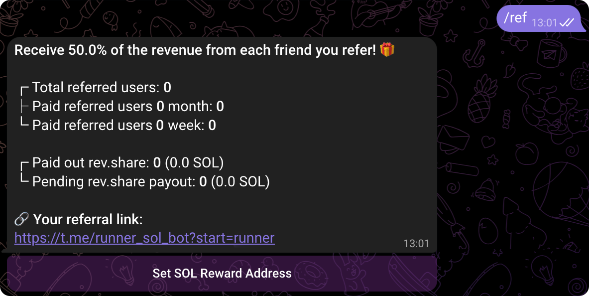 * Set SOL reward address - use this button to indicate your SOL address for rewards from your referrals.
