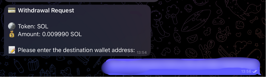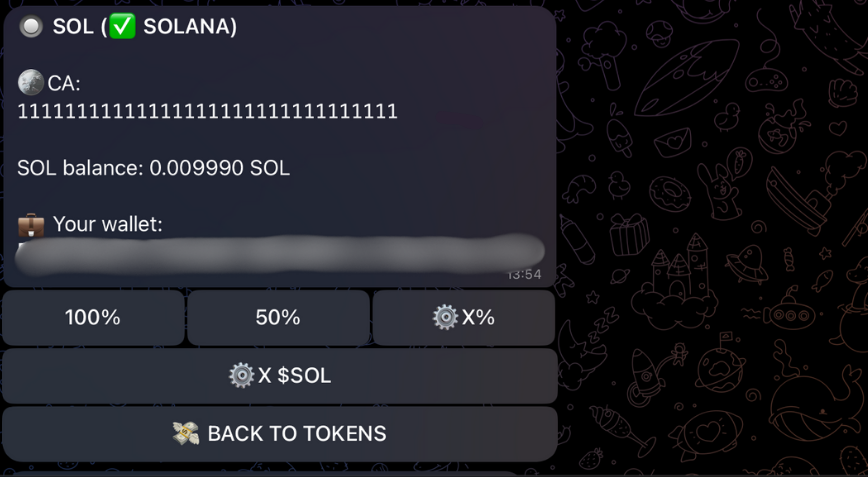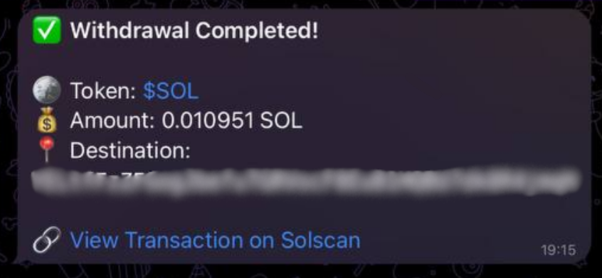 3. Choose the withdrawal amount: **100%**, **50%**, **Custom percentage (**⚙️X %), or **Custom token amount (**⚙️X $SOL).<br>