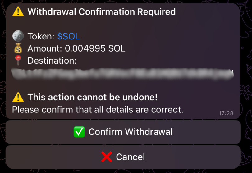 6. Once confirmed, the withdrawal **cannot be undone**.<br>